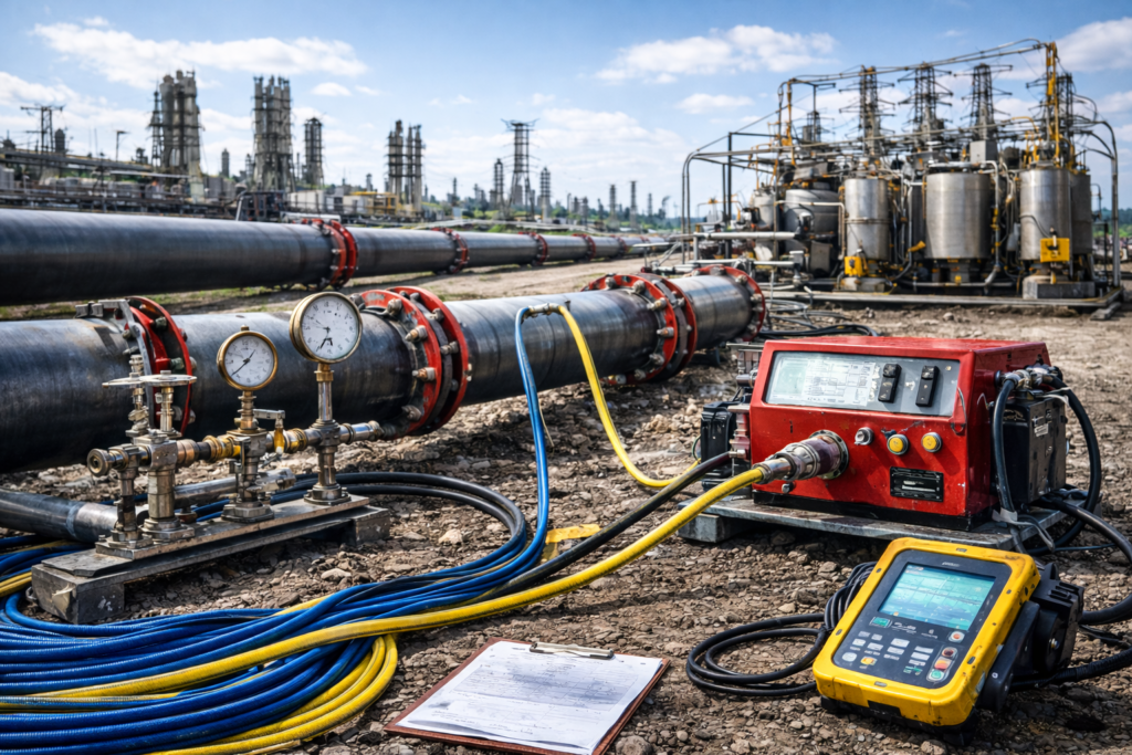 Delivering compliant hydro testing for aboveground and underground piping systems, executing safe, controlled testing in line with ASME and API standards to ensure integrity, reliability, and operational safety.
